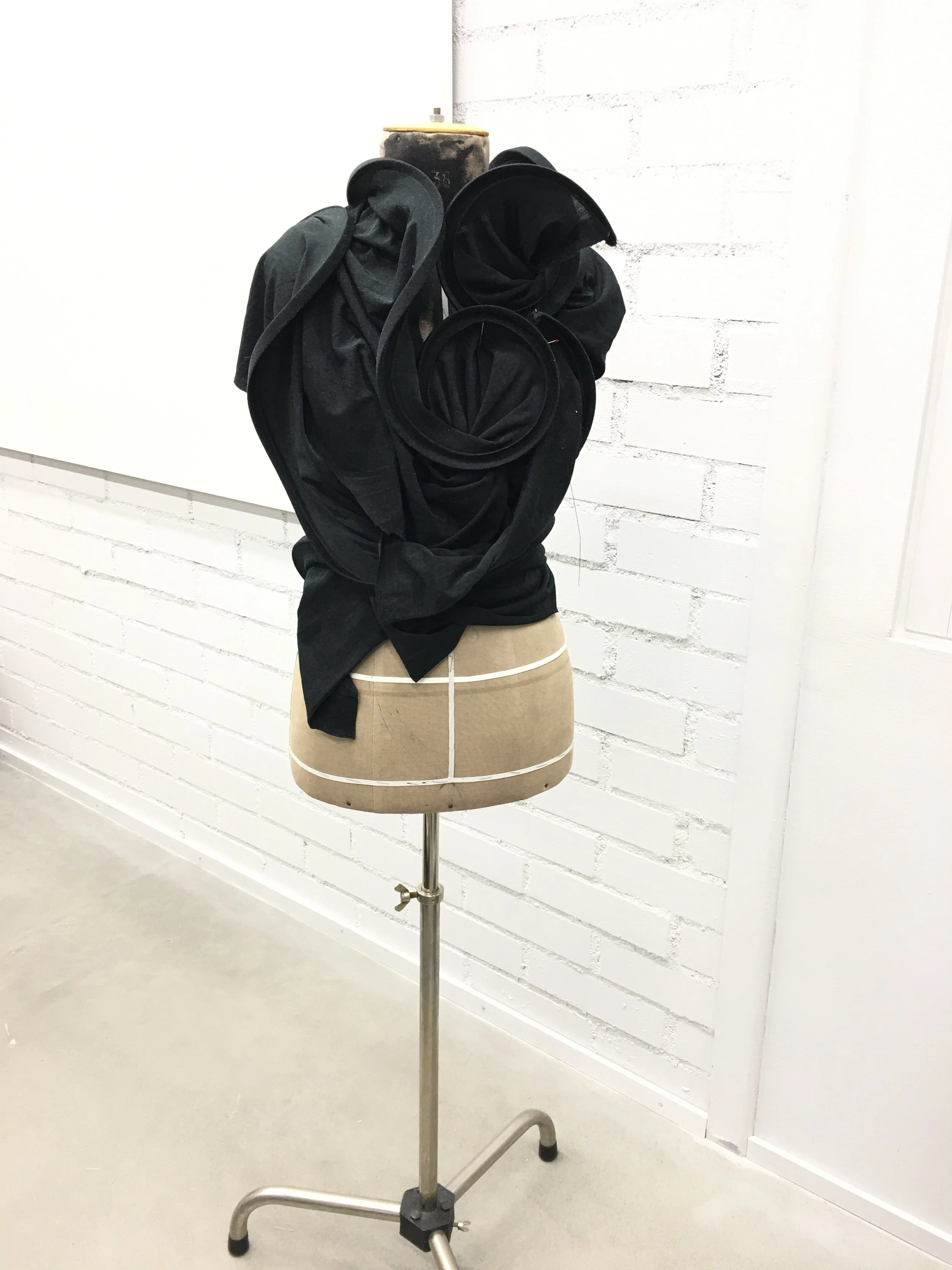 Creating one look for Cristóbal Balenciaga Museum’s Transmissions project. Researching Balenciaga’s design heritage and integrating it to my own design language. I focused on Balenciaga’s silhouettes and the invisible support structures within his garments such as boning. In addition, I was inspired by Cindy Sherman’s shape shifting self-portraits which I applied to my look by making the garment wearable in multiple ways.
