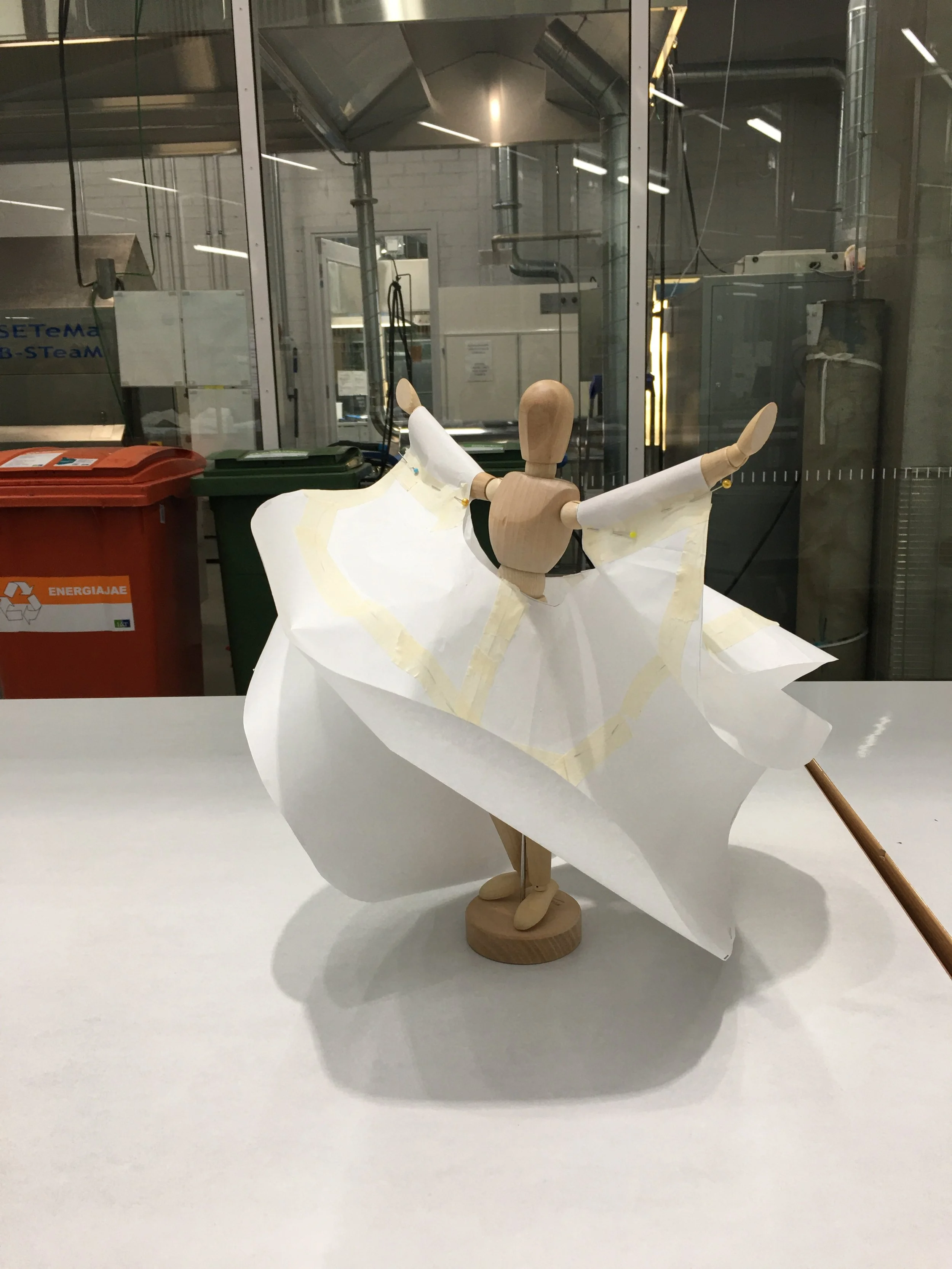 Designing a versatile outfit for a dancer which incorporates two layers, firstly a functional training layer optimised for ideal body movement, prioritising comfort and flexibility. The design also includes a top layer for performances, featuring integrated wearable technology that can be controlled directly by the dancer.